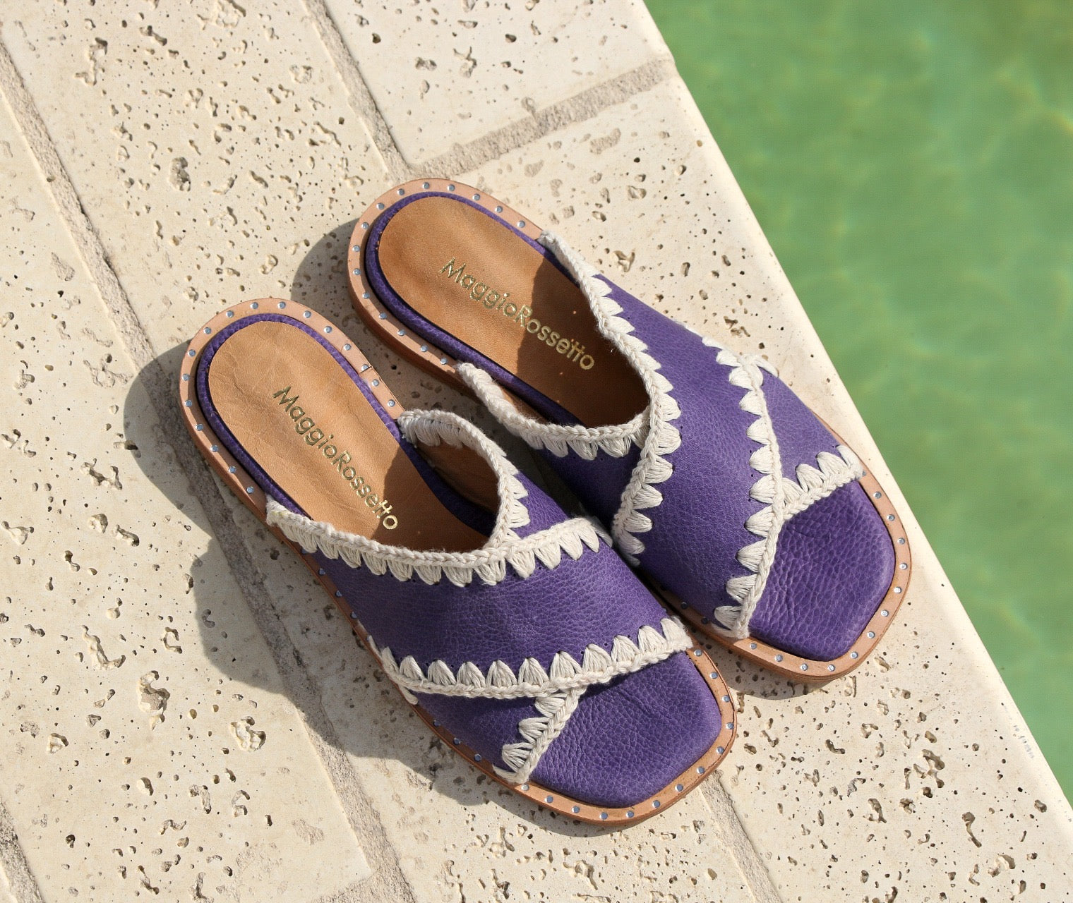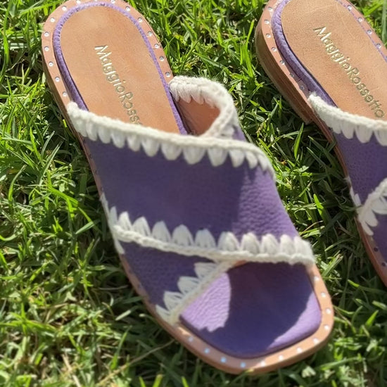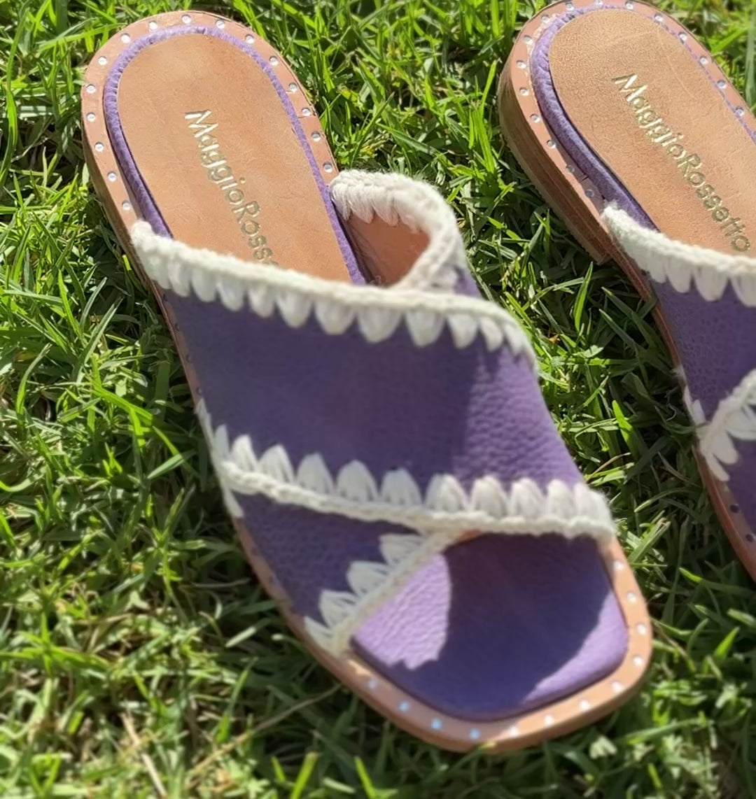 Forradas en cuero y terminadas a mano con detalle tejido artesanal en hilo crudo.